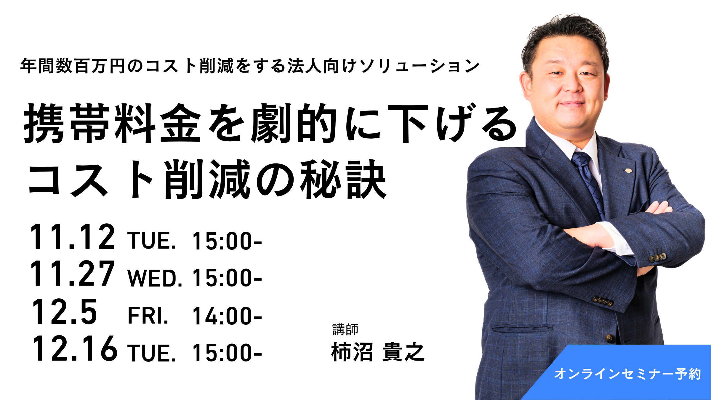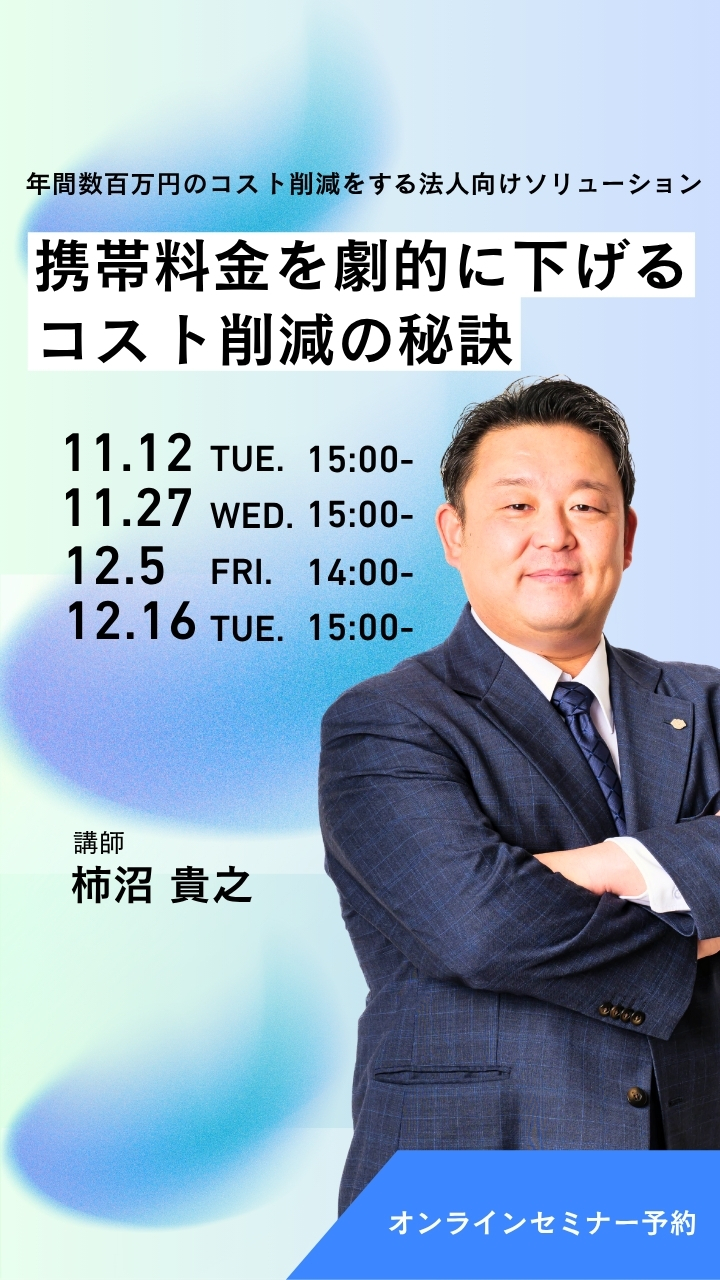 実は多くの企業で、同じキャリア・同じ品質のままでも、数十万〜数百万円のコスト削減が可能です。本セミナーでは、通信費を“維持費”ではなく“利益創出のチャンス”として見直すための実践的なポイントを30分でお伝えします。